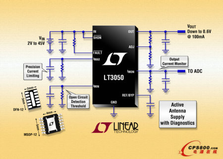 LT3050 用體積非常小和低成本的 2.2uF 陶瓷輸出電容器工作,從而優化了穩定性和瞬態響應。這種纖巧的外部電容器可在沒有附加串聯電阻 (ESR) 的情況下使用,而在采用其他很多穩壓器時使用串聯電阻是很常見的。LT3050 的寬輸入和輸出電壓范圍、快速瞬態響應、50uA (工作時) 和 <1uA (停機時) 的低靜態電流使其成為有源天線電源、工業電源、需要最佳運行時間的電池供電系統、以及需要診斷信息和保護功能的高可靠性電源的卓越選擇。