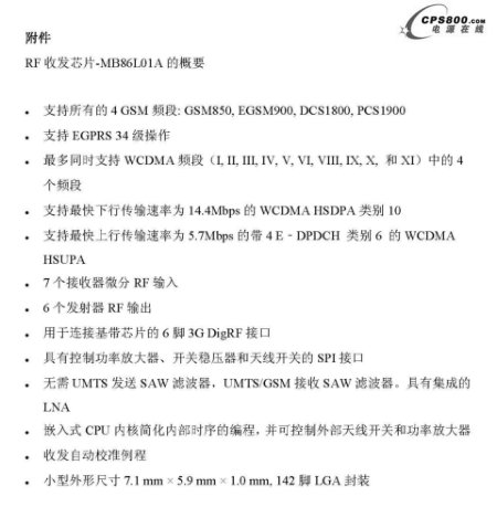 富士通微電子(上海)有限公司近日宣布推出其進(jìn)入移動(dòng)電話RF收發(fā)器市場(chǎng)以來的首款產(chǎn)品-RF收發(fā)芯片。該款RF收發(fā)芯片用于移動(dòng)電話,支持2G GSM/GPS/EDGE和3G UMTS/HSPA協(xié)議,并在單一芯片上集成了3G DigRF(*1)接口。這款新型收發(fā)芯片體型小巧,無需外部SAW濾波器(*2)和低噪聲放大器(LNA)(*3)。移動(dòng)電話制造商使用這款芯片可以減少元器件數(shù)量、占板面積和物料費(fèi)。同時(shí),簡(jiǎn)單的編程模式有助于大大縮短開發(fā)時(shí)間,并簡(jiǎn)化RF和無線平臺(tái)的集成。MB86L01A收發(fā)芯片的樣片即日起供貨。