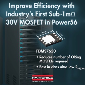 飛兆半導體公司 (Fairchild Semiconductor) 為服務器、刀片式服務器和路由器的設計人員帶來業界首款RDS(ON) 低于1 mOhm的30V MOSFET器件,采用Power 56封裝,型號為 FDMS7650。FDMS7650 可以用作負載開關或ORing FET,為服務器中心 (server farm) 在許多電源并行安排的情況下提供分擔負載功能。FET的連續導通特性,可降低功耗和提高效率,以提升服務器中心的總體效率。FDMS7650 是首款采用 Power56 封裝以突破1 mOhm 障礙的MOSFET器件,最大RDS(ON) 僅為0.99 mOhm,能夠減少傳導損耗,提高應用的總體效率。例如,與一個使用2.0 mOhm MOSFET的典型應用相比,這款30V MOSFET便能夠以一半的FET數目,提供相同的總體RDS(ON)。