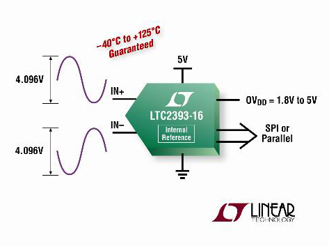 近日,凌力爾特公司 (Linear Technology Corporation) 全新推出 16 位 SAR ADC LTC2393-16,該器件以高達 1Msps 的采樣率實現(xiàn)卓越的 94dB SNR,而且無周期延遲。LTC2393-16 用單 5V 電源工作,支持 ±4.096V 的寬輸入范圍,適用于更多需要最大信號擺幅以在要求苛刻的工業(yè)環(huán)境中克服背景噪聲的通用設計。