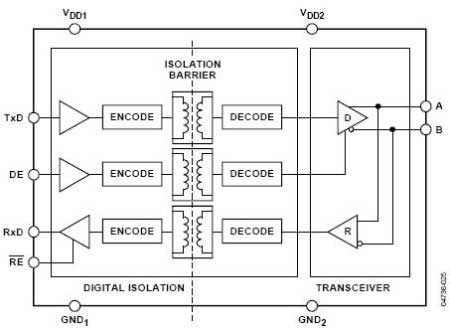 圖2 ADM2483功能內部框圖