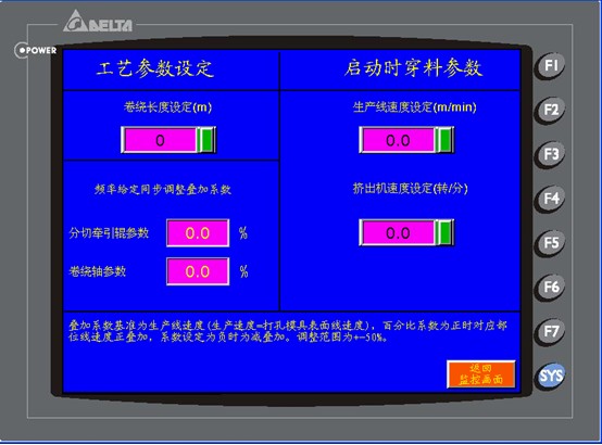起初該設備廠采用同步控制器+變頻器作同步調節,PLC、變頻器、同步器、溫控表等產品品牌均不一樣,使用起來尤其是服務上比較麻煩,經過與客戶溝通,最終確定用臺達變頻器+PLC+觸摸屏+溫控表做的成套系統解決方案。