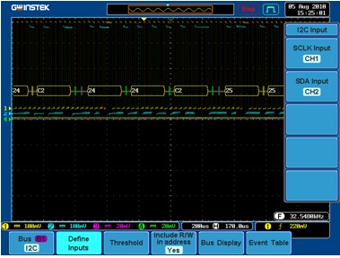 The GDS - 3000系列窗口放大功能提供在同一時間下能以雙顯示模式同時顯示主要波形和放大波型二部份。 在“窗口放大”模式中,工程師可使用光標任意決定對于主要的波形其需要放大的寬度和位置,放大窗口中會把光標已圈選的范圍進行擴展放大,藉以提供工程師詳細的波型細節。“窗口放大”模式當中其光標設定提供粗/微調功能,可以幫助工程師快速且精準的移動縮放窗口中任何預期的位置。