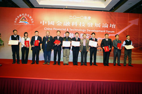 由中國計算機用戶協會、《金融時代網》聯合主辦的“中國金融科技發展論壇”至今已經成功舉辦五屆,在今年的第五屆本次會議上,以時下金融業高度關注的“金融信息安全”主題,邀請國內外金融業專家,IT專家歡聚一堂,共同探討和分享中國金融安全科技趨勢的思想盛宴。大會由中國工商銀行原科技部總經理單懷光主持、中國計算機用戶協會理事長陳正清、中國進出口銀行原副行長趙文章致辭,中國工程院院士、中國計算機學會信息保密專業委員會主任沈昌祥、中國人民銀行科技司王梅,以及英特爾(中國)有限公司、方正電腦、中軟華泰信息技術有限公司、綠盟科技公司等金融科技企業代表發表了主題演講。大會頒發了2010年度十大金融科技杰出人物、2010年度十大金融科技企業杰出人物、2010年度十大金融科技杰出企業、2010年度十大金融科技企業用戶信賴產品等獎項。其中,聯想集團、英特爾(中國)有限公司、日立數據系統(中國)有限公司、衛士通信息產業股份有限公司、深圳科士達科技股份有限公司、中聯綠盟信息技術(北京)有限公司等企業分獲2010年度十大金融科技杰出企業獎項。