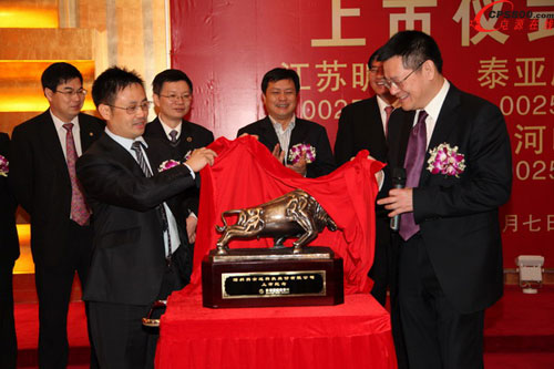 科士達董事長向深交所副總經(jīng)理陳鴻橋贈送公司上市紀念禮物