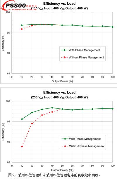 FAN9612采用交錯方式,并在所有工作條件下都保持兩個功率級精確的180°相位差,因此能夠降低導通損耗,尤其是在大電流的應用中,如800W~1000W的電源系統。FAN9612擴大了功率范圍,減小了紋波電流和峰值電流。通過電源軌的交錯排列,FAN9612還可以減小輸入濾波器尺寸,較其他解決方案能減少線路板空間多達10%。良好的熱管理可以降低元器件的溫度。這些特性使采用FAN9612的電源能夠滿足“能源之星”和“電腦節能拯救氣候行動”標準的要求,使電源的轉換效率可以達到96%。