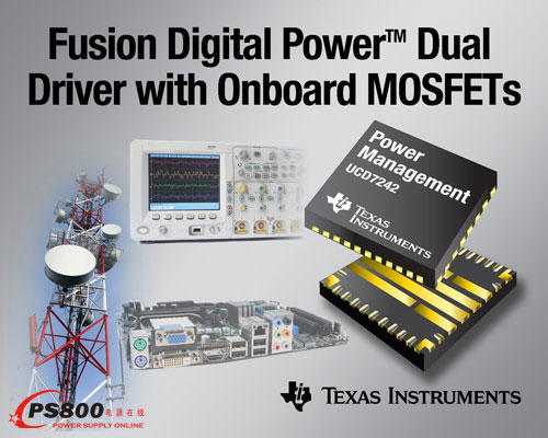 日前,德州儀器 (TI) 宣布推出一款具備集成型功率 MOSFET、保護模塊以及監控特性的數字雙路同步降壓功率驅動器,其與業界標準的驅動器相比,可將板級空間與組件數銳減 80%。UCD7242 使設計人員能在小型封裝中獲得采用兩個獨立的 10 A 軌或一個 20 A 軌的靈活性。這款高準確度片上 (on-die) 電流感測元件消除了校準或溫度補償的麻煩。UCD7242 的輸入電壓范圍在介于 2.2 V 至 18 V 之間,能夠支持各種不同的應用領域,如測試與儀表、電信、商業電源以及具有多個負載點的主板等。