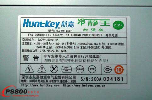 冷靜王加強版2.31+采用了雙路+12V輸出,每路+12V均可提供14A的負載,足以滿足主流CPU及中端顯卡的需求。電源的額定功率為270W,更重要的是它還提供一路顯卡6pin輔助供電接口,實實在在地支持主流中端顯卡。
