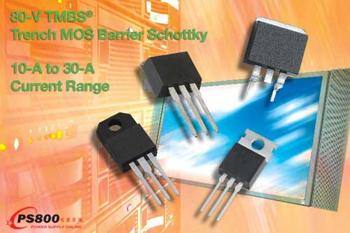 日前,Vishay Intertechnology, Inc.(NYSE 股市代號:VSH)宣布,推出6款單芯片和雙芯片80-V TMBS® Trench MOS勢壘肖特基整流器。這些整流器采用4種功率封裝,具有10A~30A的電流額定范圍。