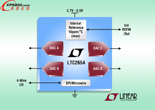 凌力爾特公司 (Linear Technology Corporation) 推出 4 通道電壓輸出 16 位和 12 位數(shù)模轉(zhuǎn)換器 (DAC) 系列 LTC2654,該器件具內(nèi)部基準(zhǔn)和 SPI 接口。在整個(gè)溫度范圍內(nèi),LTC2654 DAC 實(shí)現(xiàn)了 INL 最大值為 ±4LSB 的 16 位性能,該性能比最接近和具內(nèi)部基準(zhǔn)的同類 16 位 4 通道產(chǎn)品好兩倍。LTC2654 具有 ±2mV (最大值) 的最低失調(diào)誤差和 0.1% (最大值) 的最低增益誤差,二者結(jié)合可確保 LTC2654 在靠近電源軌時(shí)保持準(zhǔn)確,并為用戶提供更寬的有效輸出范圍。LTC2654 準(zhǔn)確的性能規(guī)格使其非常適用于多通道、開環(huán)和閉環(huán)系統(tǒng)。應(yīng)用包括移動(dòng)通信、過程控制和工業(yè)自動(dòng)化、自動(dòng)測(cè)試設(shè)備 (ATE) 以及汽車系統(tǒng)。