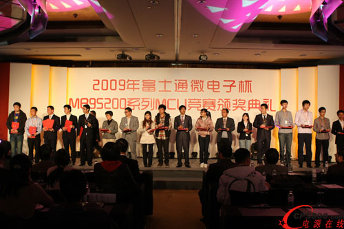 由富士通微電子(上海)有限公司主辦的“2009年富士通微電子杯MB95200系列MCU設計競賽”頒獎典禮今天在上海威斯汀大酒店隆重舉行。富士通微電子亞太區(qū)的高級副總裁鄺國華先生、市場部高級總監(jiān) Kusumoto先生、銷售總監(jiān)Onodera先生和市場總監(jiān)鄭國威先生一起,合作院校的老師代表、獲獎選手等近100人匯聚一堂參加了本屆頒獎盛典。