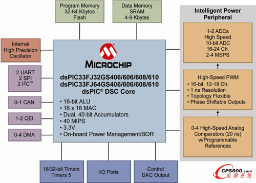 要實(shí)現(xiàn)數(shù)字電源轉(zhuǎn)換應(yīng)用的高速、高精度數(shù)字控制回路,需要一個(gè)高性能的DSP引擎,以及專門的數(shù)字電源外設(shè)。Microchip的16位dsPIC33F “GS”系列DSC提供了專為高性能、數(shù)字電源設(shè)計(jì)的片上外設(shè)。片上數(shù)字電源外設(shè)包括高速PWM、ADC和模擬比較器。全新擴(kuò)展的dsPIC33F“GS”系列支持電磁爐、不間斷電源、太陽能和純正弦波逆變器、智能電池充電器、功率因數(shù)校正、HID照明、熒光燈、LED照明以及AC-DC和DC-DC電源轉(zhuǎn)換器等諸多應(yīng)用。