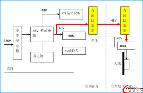 圖1 戶外基站 DC48V供電的RRU的電源解決方案
