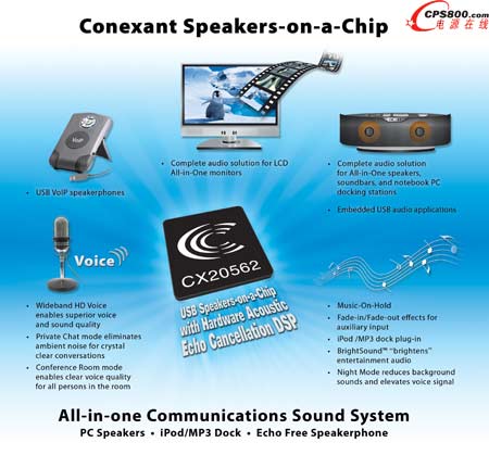 為影像、音頻、嵌入式調(diào)制解調(diào)器和視頻監(jiān)控應(yīng)用提供創(chuàng)新半導(dǎo)體解決方案的領(lǐng)先供應(yīng)商科勝訊系統(tǒng)公司(納斯達克代碼:CNXT)宣布,其屢獲殊榮的 CX20562 片上揚聲器音頻解決方案為業(yè)界領(lǐng)先的最佳耳機解決方案供應(yīng)商 VXi Corporation 采用,用于新型 USB 耳機適配器。VXi 的 X200 適配器針對的是統(tǒng)一通信(UC)、VoIP 電話和語音識別等要求高質(zhì)量語音和音頻、基于計算機的語音通信應(yīng)用。目前VXi 的全球分銷商和經(jīng)銷商已開始供貨。