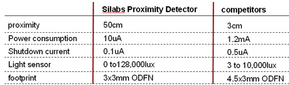 下面是關于Silicon Labs 的紅外接近傳感器與競爭對手在一些性能上的對比: