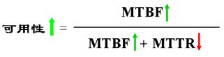 容錯是一種能力,即UPS能夠容忍故障的能力。最能體現UPS容錯能力的指標是可用性,可用性衡量的是系統提供持續服務的能力,對于可用性高的UPS系統,當UPS發生故障時,不會影響系統的繼續運行,并且可以快速修復。隨著信息化的發展,人們對供電要求越來越高,一年365天*24小時不能斷電,所以對UPS的需求也正在由可靠性向可用性轉變。可用性的公式如下: