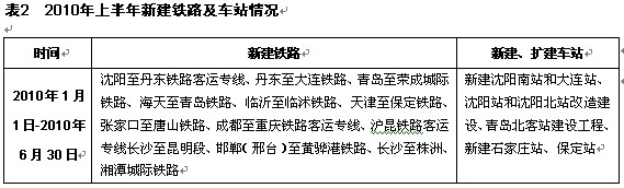 在鐵路建設方面,2010年,我國鐵路全年投資計劃為8235億元,而上半年只完成了2713.7億元,下半年我國鐵路投資還需完成5521.3億元,投資額是上半年的2倍多。從目前狀況來看,我國下半年鐵路發展投資出現加速趨勢已經是大概率事件。在上半年多個省市地區已經公布了今年以及未來幾年內的鐵路建設投資規劃,從投資規劃來看,各地計劃鐵路投資額都較為巨大,并且有良好的延續性,能夠保持幾年內投資額的不回落甚至是穩步提升。
