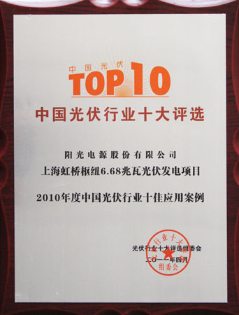 系列光伏逆變器入選“2010年度中國光伏行業(yè)十大創(chuàng)新產(chǎn)品”。同時(shí),使用該逆變器的上海虹橋樞紐大型光伏發(fā)電項(xiàng)目也同期入選“2010年度中國光伏行業(yè)十佳應(yīng)用案例”。