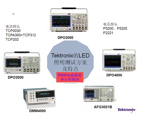 圖1:泰克專門針對LED照明應用提供各種測試解決方案組合供客戶選擇