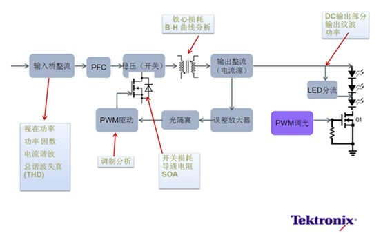 圖2:LED照明驅(qū)動電源的關鍵測試項目