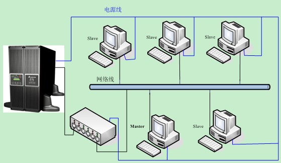 1. 一臺大容量的UPS電源可以供多臺PC電腦設備正常運行,但UPS的通信接口通常只有一個;也就是說當市電中斷時只有一臺PC電腦可以被通知進行正常執行關機程序。其它的PC電腦怎么辦?
