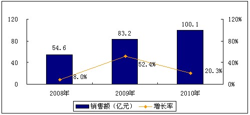圖1 2008-2010年中國無線網絡優(yōu)化行業(yè)市場銷售規(guī)模