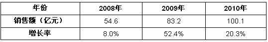 表1 2008-2010年中國無線網絡優(yōu)化行業(yè)市場銷售規(guī)模