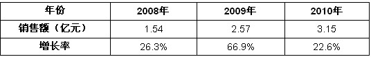 表2 2008-2010年中國通信直放站電源產品市場銷售規(guī)模