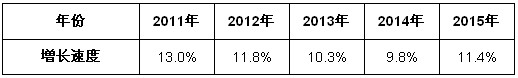 表4 2011-2015年中國通信直放站電源市場增長速度預測