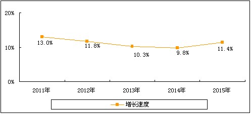 圖4 2011-2015年中國通信直放站電源市場增長速度預測