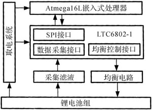 取電系統(tǒng)是均衡電路的供電來源,電源取自鋰電池組,并提供給低功耗嵌入式處理器與LTC6802-1芯片。嵌入式處理器時(shí)均衡電路的核心,一方面通過SPI接口與LTC6802-1進(jìn)行通信,另一方面對(duì)獲得的數(shù)據(jù)進(jìn)行簡單的處理。數(shù)據(jù)采集電路主要由LTC6802-1芯片構(gòu)成,該芯片內(nèi)置了高精度AD轉(zhuǎn)換器,結(jié)合外部濾波電路可以對(duì)鋰電池組參數(shù)實(shí)現(xiàn)精確得采樣。LTC6802-1芯片均衡接口的特殊設(shè)計(jì),能夠控制外部均衡電路進(jìn)行工作,簡化了均衡電路。