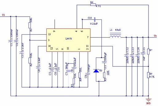 ,其中R9=4.7K,令Uo=10.8V,則R7=5.25K,取標稱值5.1K。