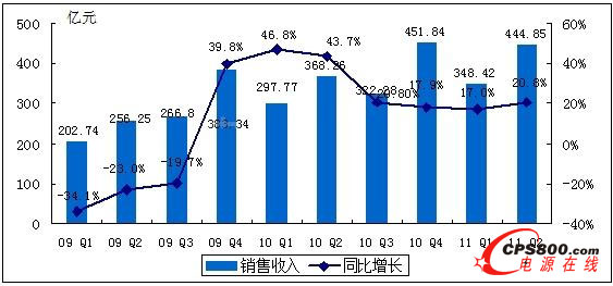 2009Q1——201Q2中國集成電路產業銷售額規模及增長