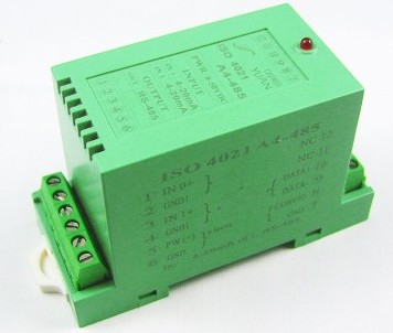ISO 4021信號A/D(模擬轉(zhuǎn)數(shù)字)轉(zhuǎn)換器包括電源隔離,信號隔離、線性化,A/D轉(zhuǎn)換和RS-485串行通信。每個串口最多可接256只 ISO 4021系列模塊,通訊方式采用ASCII碼通訊協(xié)議或MODBUS RTU通訊協(xié)議,其指令集兼容于ADAM模塊,波特率可由代碼設(shè)置,能與其他廠家的控制模塊掛在同一RS-485總線上,便于計算機編程。