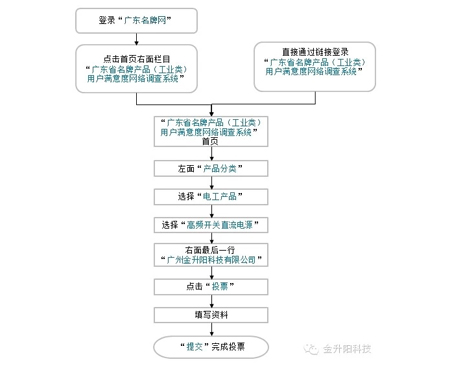 投票鏈接網址:http://210.76.65.113/gdsmp/provote/vote.asp,進入后點擊電工產品,選擇高頻開關直流電源,找到廣州金升陽科技有限公司,點擊投票即可。