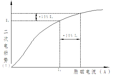 勵磁特性的二次極限電動勢Eal不低于規定值,此電動勢幅值增大10%時致使相應勵磁電流增大不超過100%。當客戶有規定時,在勵磁極限二次電動勢下測得的勵磁電流峰值應不超過規定值,如果未指定限值,則勵磁電流應不超過折算到二次側Ith的10%。對于TPS,由用戶規定額定等效二次極限電動勢,通常表示如下:Eal≥KsKssc(Rct+Rb)Isn其中Ks為客戶給定的暫態系數,Rct由制造廠的設計確定,但在有些使用條件下,為了與其他設備相配合,可由客戶提出其限值。
