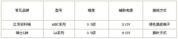 閉環霍爾電流傳感器具有響應時間短、工作頻率高、過載能力強、高隔離度等眾多優點。一般情況下,根據輸入信號、外形、內孔尺寸來選擇霍爾電流傳感器。在傳感器行業內,江蘇安科瑞霍爾電流傳感器嚴格按照JB/T 7490-2007《霍爾電流互感器行業標準》規定的各項要求,相對于同行采用插針式接線不同,一律采用綠色可插拔端子,現場接線方便、可靠。常見的品牌產品如表1。