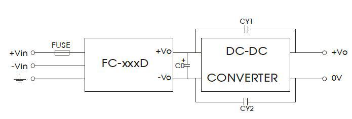 在電路設(shè)計(jì)方面,由于鐵路電源對(duì)可靠性以及EMC要求比較高,而我們電源本身是沒有EMC防護(hù),所以需要在模塊前端設(shè)計(jì)EMC防護(hù)電路,推薦使用FC-CX1D模塊達(dá)到更高的EMC等級(jí):