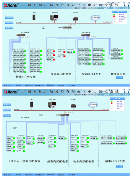 廣州萬達廣場電力監控系統依據《萬達廣場慧云智能化管理系統設計標準(2015版)》中變配電監控子系統要求設計,對項目變配電系統進行改造。
