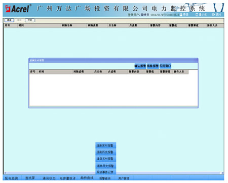 3)告警管理:系統具備遙測報警配置功能,報警類型包括遙測和遙信報警。系統報警時能夠進行信息語音提示,自動彈出報警畫面。遙測歷史報警查詢:安科瑞Acrel-2000電力監控系統能夠對遙信、遙測報警數據進行存儲,方便用戶對系統報警事件進行追溯查詢。
