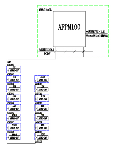 本次項目共使用15只安科瑞電氣股份有限公司AFPM系列消防設備電源監控模塊AFPM3-2AV,安裝在地下室及樓層強電間的消防配電回路的配電箱上;消防設備電源監控系統主機安裝在消防總控制室;現場電源監控模塊采用總線方式接至消防總控制室的AFPM100/B壁掛式消防設備電源監控主機。此系統可以提前對消防設備電源故障進行報警,避免火災發生時消防設備不能正常使用,消防設備電源監控系統一旦投入使用,將有效的降低消防設備非正常投入使用的發生率。