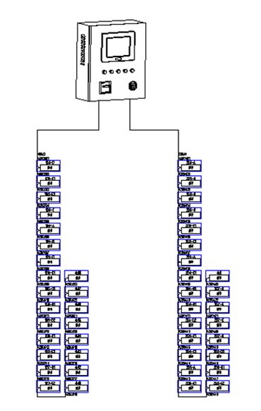 本項目通訊總線共接入二條通訊總線,總線在配電室手拉手串接后,接入壁掛式后臺,組成電氣火災(zāi)系統(tǒng)的大動脈。箱體中漏電流互感器通過電流線接入漏電探測器,漏電探測器實(shí)時顯示漏電情況。以上所述組成一套信號穩(wěn)定,精度可靠的電氣火災(zāi)監(jiān)測系統(tǒng)。本系統(tǒng)組網(wǎng)共分為三層: