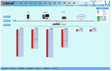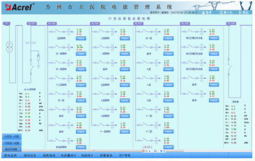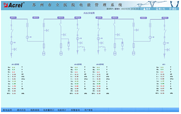 蘇州市立醫院綜合樓(教學樓)電能管理系統針對配電所高低壓進出線回路進行用電監控與電能管理。