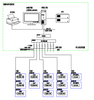 本項目設計為變配電所部分電力監控系統,變配電所位于地下一層,其中有兩路高壓進線,配有綜合保護裝置,低壓部分,進線柜、饋線柜配有儀表,本電力監控系統只接入低壓部分儀表。