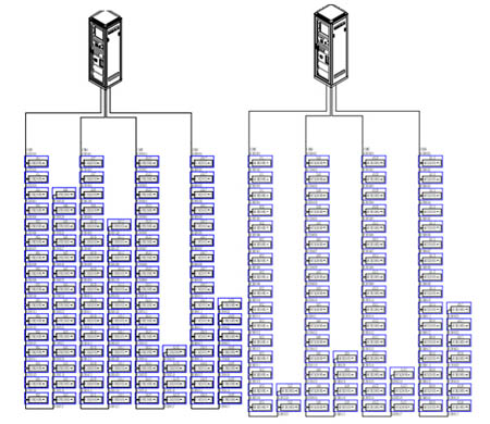 大連奧特萊斯商場變電所現場有剩余電流式儀表101只ARCM200BL-J1,大連奧特萊斯溫泉變電所現場有剩余電流式儀表80只ARCM200BL-J1,安裝于變電所內。現場儀表采用總線方式分別接至兩個值班室的Acrel-6000柜體式電氣火災監控系統。
