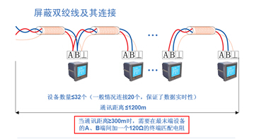現場儀表以手拉手方式通過屏蔽雙絞線(RVVSP2*1.0)進行通訊連接,每根總線連接智能儀表數量在20只左右,然后將數據上傳至串口服務器NPORT5410,進而將數據上傳至當地監控終端。具體連接示意圖如下所示: