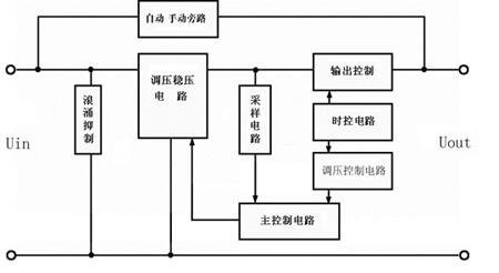 其工作過程為:照明負載開始工作時,采樣電路獲取當時節電柜的輸出電壓,經檢測控制電路與基準電壓進行比較判斷,然后輸出控制信號,控制調壓變壓器進行調壓,使補償變壓器產生大小不同的補償電壓,達到降低和穩定輸出電壓的目的。