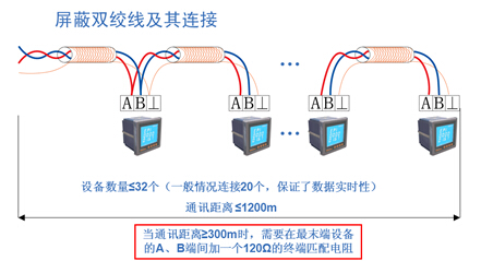 現場儀表以手拉手方式通過屏蔽雙絞線(RVSP2*1.0)進行通訊連接,每根總線連接智能儀表數量在20只左右,不同種類的智能裝置連接在不同的總線上,然后將數據上傳至通訊管理機ANET-LX8,進而將數據上傳至當地監控終端。具體連接示意圖如下所示: