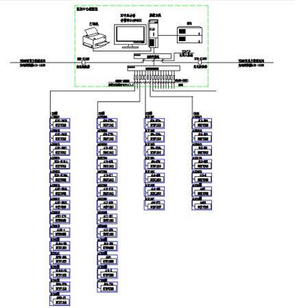 安科瑞Acrel-5000建筑能耗分析管理系統以工作站主機、通訊設備、測控單元為基本工具,為大型公共建筑的實時數據采集、開關狀態監測及遠程管理與控制提供了基礎平臺,它可以和檢測、控制設備構成任意復雜的監控系統。該系統主要采用分層分布式計算機網絡結構,如系統結構圖所示:乳山市民中心項目能耗系統站控管理層及網絡通訊層。現場共有56只導軌式電能表。