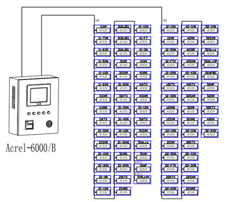 本項目中的所有儀表須嚴格按照手拉手的形式連接,且所有的通訊總線須沿著弱電橋架鋪設。本項目的儀表分布在樓層強電間電氣火災監控探測。